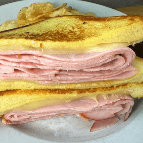 Tavern ham, Swiss cheese, French toast, and Melba