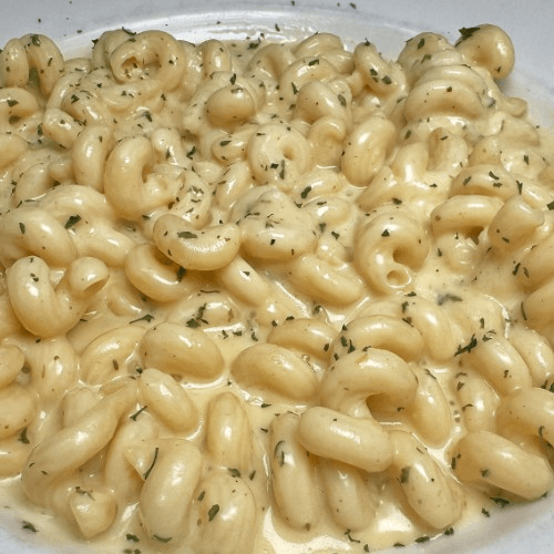 Penne pasta, Old Bay Alfredo, diced chicken, shrimp, lump crab meat, and garlic butter