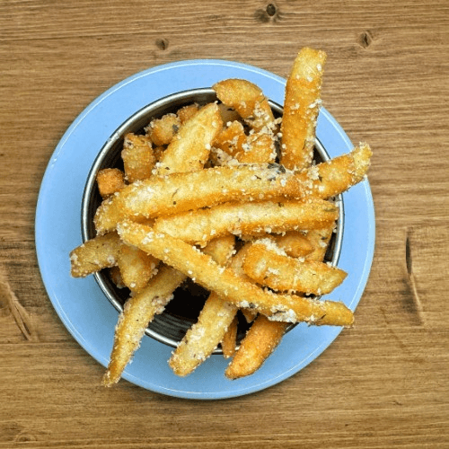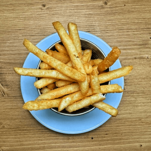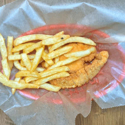 Atlantic white fish fillets, WMBC beer batter, French fries, and coleslaw. Be aware, this item is better served in house. the batter can become less crispy when prepared for to go.