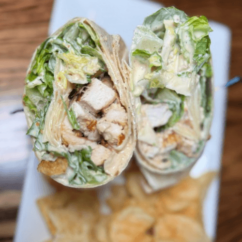 Crispy breaded chicken tossed in ranch, iceberg lettuce, tomato, and cheddar Jack