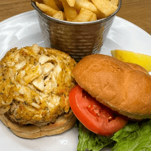 Half pound RBS crab cake and potato roll