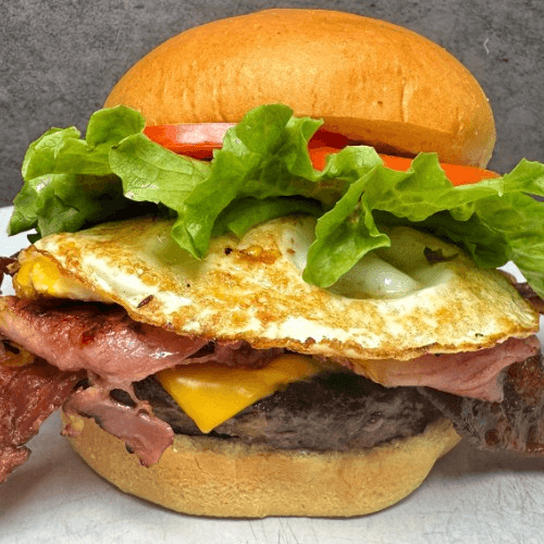 Half pound 100% Angus beef, American cheese, fried egg, tavern ham, and bacon